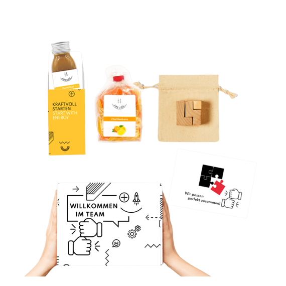 Die "Challenge Box" bietet die erste kleine Herausforderung am ersten Arbeitstag: Energie tanken und Herausforderungen meistern.