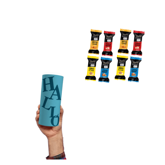 Ideal für neue Mitarbeiter oder Geschäftspartner – die "Hallo / Hey"-Geschenkdose sorgt für einen freundlichen Empfang und einen süßen Start.