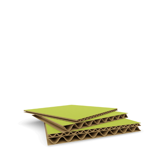 In the production of corrugated cardboard, a fluted blank is glued onto a thin paper. This creates cavities that make the corrugated cardboard so stable. Depending on how many corrugated layers are used, we speak of single-flute or double-flute corrugated cardboard. The higher the number of flutes, the more stable the product.
