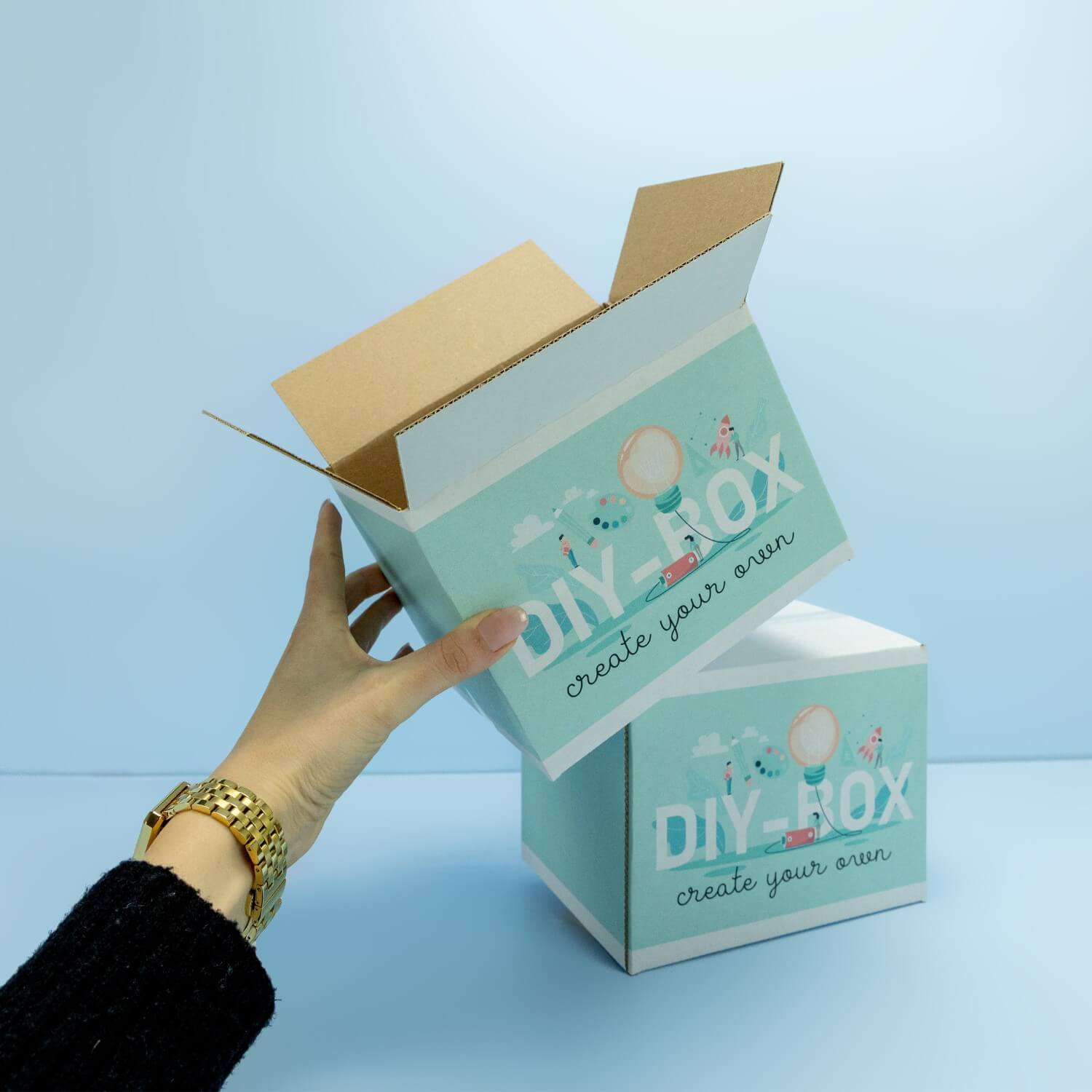 Do you want to make a unique overall impression? Packaging warehouse makes it possible. All you have to do is use our intelligent configurator, then you can individualize your folding cartons made of corrugated cardboard exactly according to your ideas with just a few clicks. This turns your packaging into an authentic one-of-a-kind.