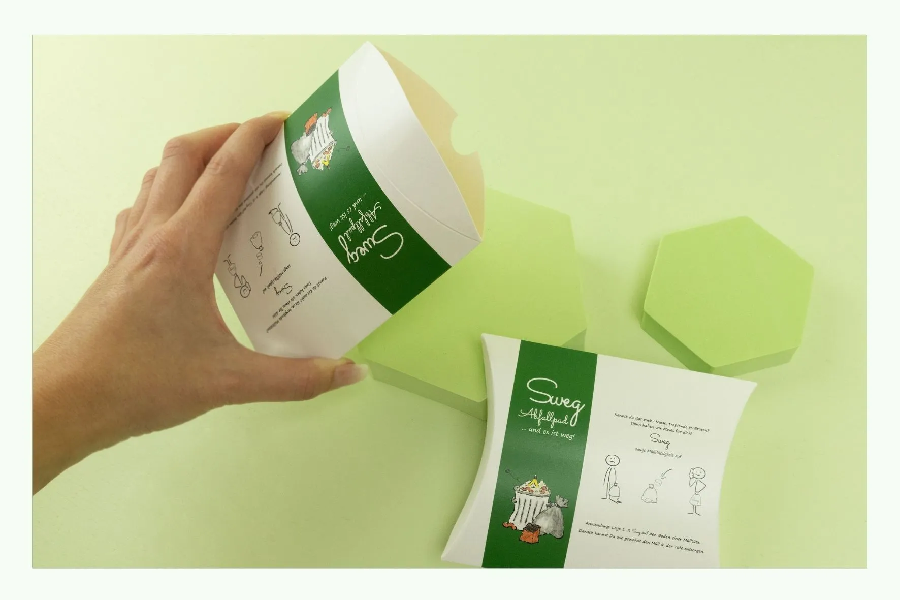 Con le scatole a cuscino, una costruzione semplice incontra una vasta gamma di opzioni di design. Il semplice meccanismo di piegatura assicura una facile manipolazione anche per il cliente. Allo stesso tempo, la scatola a cuscino ricurva aggiunge varietà allo scaffale nel punto vendita ed è quindi un'attrazione unica.